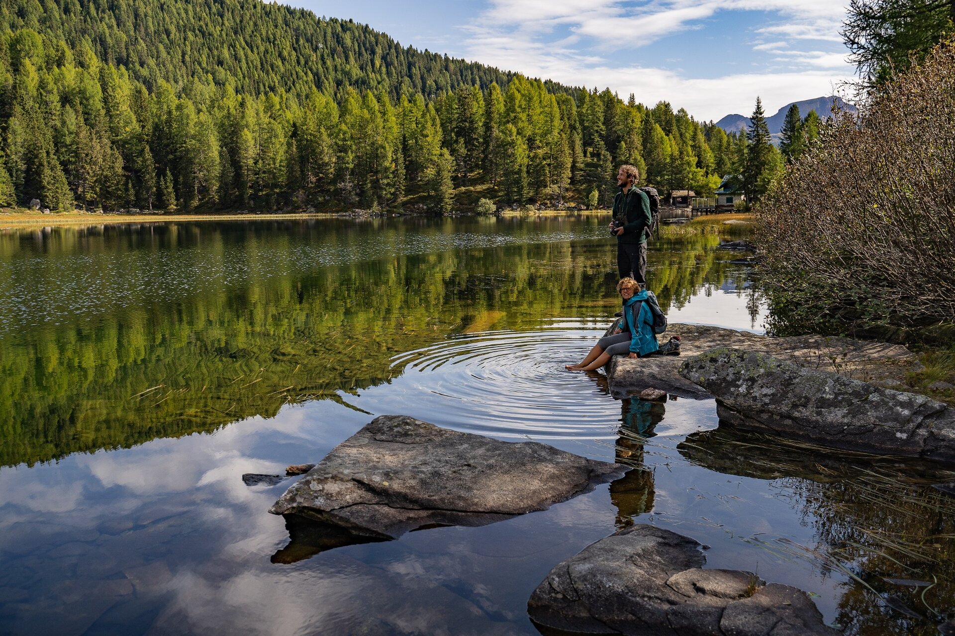 Camminata medio-facile nel Parco Naturale Adamello Brenta fino al lago delle Malghette, con vista sulle Dolomiti di Brenta.