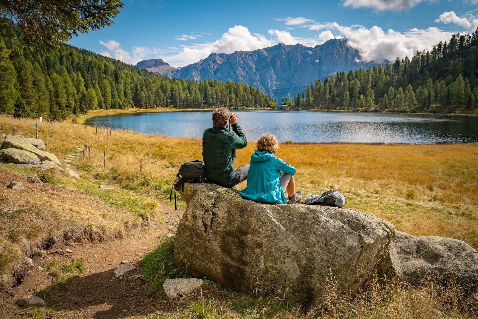 L'itinerario parte dalla malga di Dimaro, raggiungibile in auto senza permesso. Prima di partire ti meriti un assaggio di Dolomiti, infatti la malga ha una splendida visuale sul Sasso Rosso e sulle Dolomiti di Brenta. Goditi la vista e sappi che non è ancora nulla: lo spettacolo sarà ancor più emozionante una volta toccate le rive del lago.