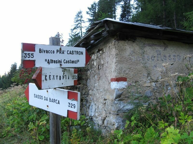 Si raggiunge il bivio per il bivacco Costanzi (cartello) ora visibile a sinistra verso nord, nord-ovest.
