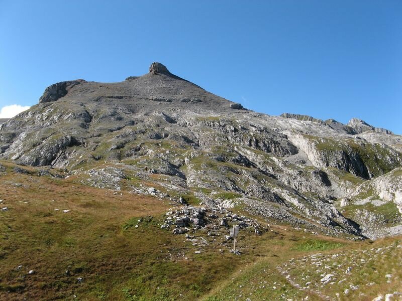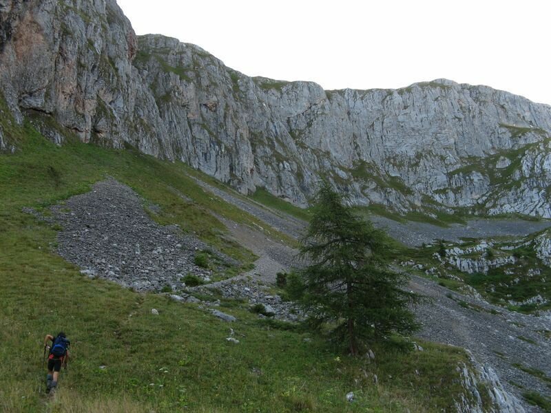 Con il sentiero si passa a destra di detto sperone e con comodo percorso si guadagna quota passando sul versante ovest dei pendii tra la cima Benon e quota 2653m (lo sperone roccioso).